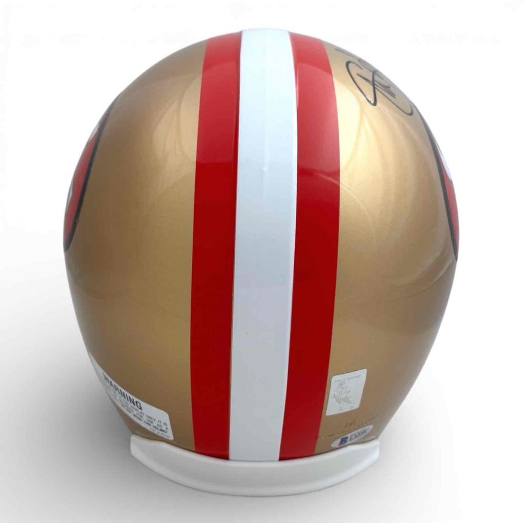 A must-have for serious collectors and loyal 49ers fans alike, this full-size helmet makes an impressive display piece for any home, office, or fan cave. Whether you’re building your collection or searching for the perfect gift, this Steve Young autographed helmet is a timeless addition celebrating one of the greatest quarterbacks in NFL history.