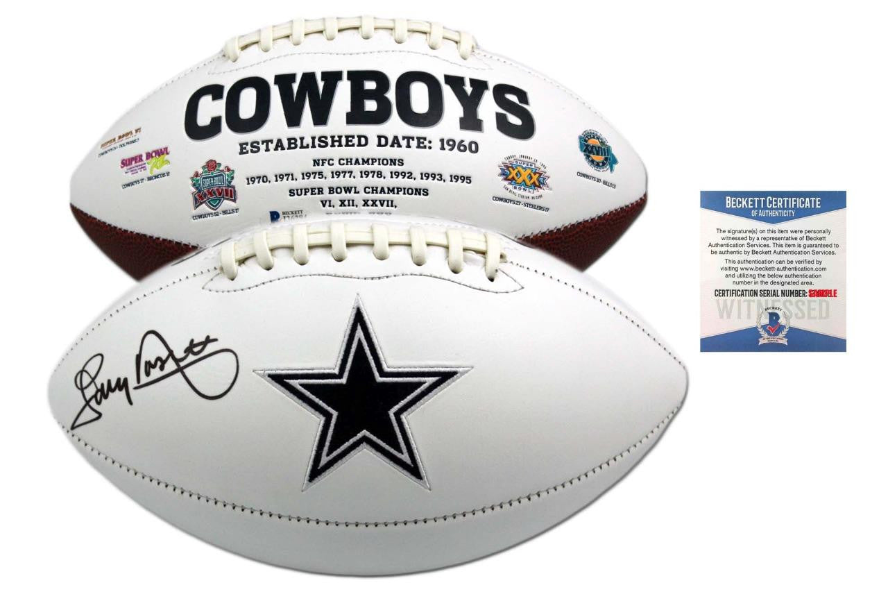 This Dallas Cowboys embroidered logo football has been personally hand-signed by NFL Hall of Famer and Dallas Cowboys legend, Tony Dorsett. Mr. Dorsett has also added "HOF 94" to his signature.