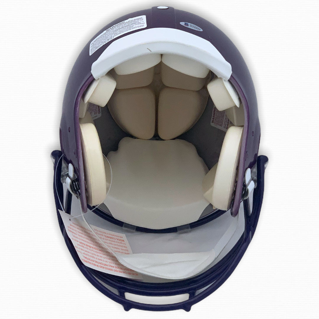 This Minnesota Vikings full-size authentic helmet has been personally hand-signed by Minnesota Vikings legend and NFL Hall of Famer, Randy Moss. Randy Moss included "Straight Cash Homie" inscription to his signature making this collectible even more valuable.